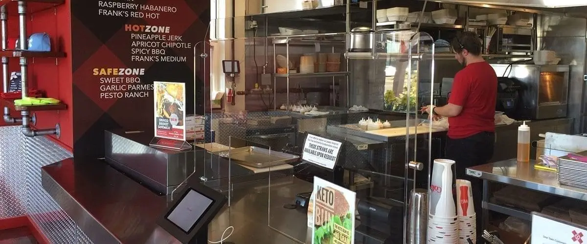 We provide sneeze guards and shields that are lightweight, modular, easy to install, and have a modern design with a clean look. These can be customized to fit any countertop or location demand whether it be freestanding for those that want to maintain the integrity of their surfaces and keep them free of holes or bolt on for more permanent applications. In addition to freestanding options there are ceiling suspended by cable or rod systems.