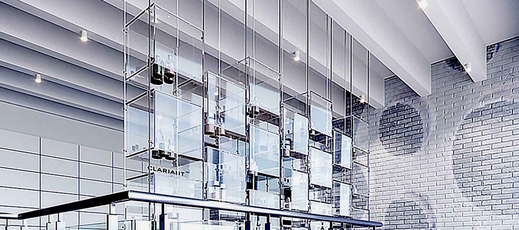 When it comes to mounting acrylic and glass shelves, our cable/rod suspension system offers a diverse range of hardware options. These options provide versatile solutions for creating customized display arrangements to suit specific spatial and design requirements. In addition to this, we provide various cable components and installation accessories, including ceiling and floor tracks, to ensure enhanced design freedom and flexibility: