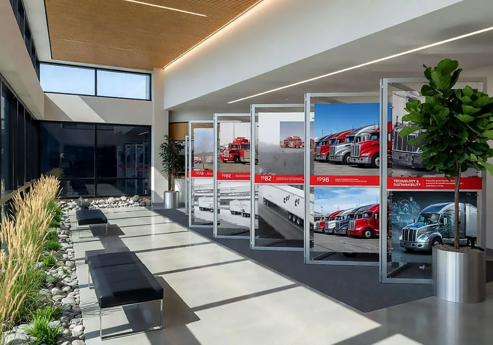 - Floor–Standing Displays — Pre-fabricated or custom made modular floor stands for displaying posters, signs, large format graphics, literature, and product.