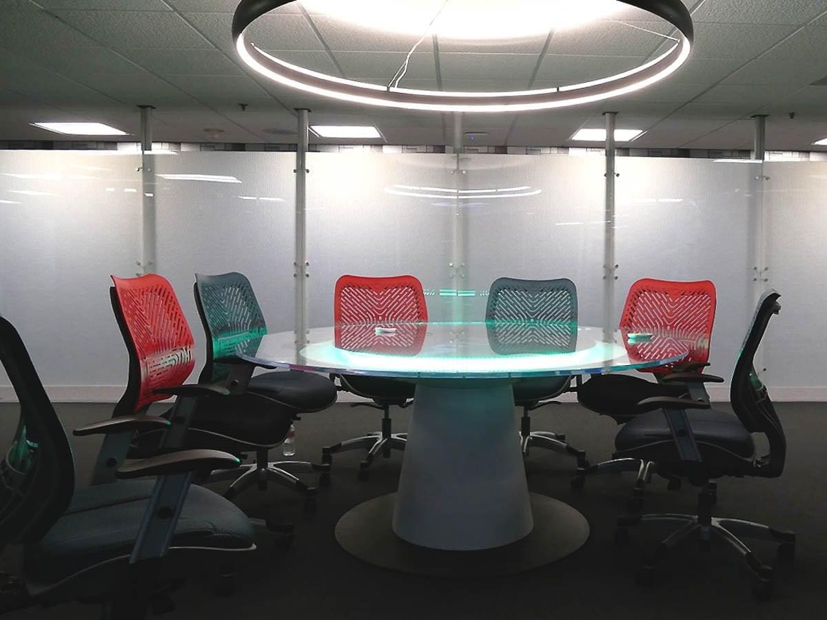 Modular wall partitions are an attractive, flexible and cost effective way to divide existing office space. The support aluminum frame can be floor-standing or span between floor-to-ceiling. Frames are modular and designed to install quickly and easily with no technical restraints. We cut and curve the profiles to your precise dimensions…