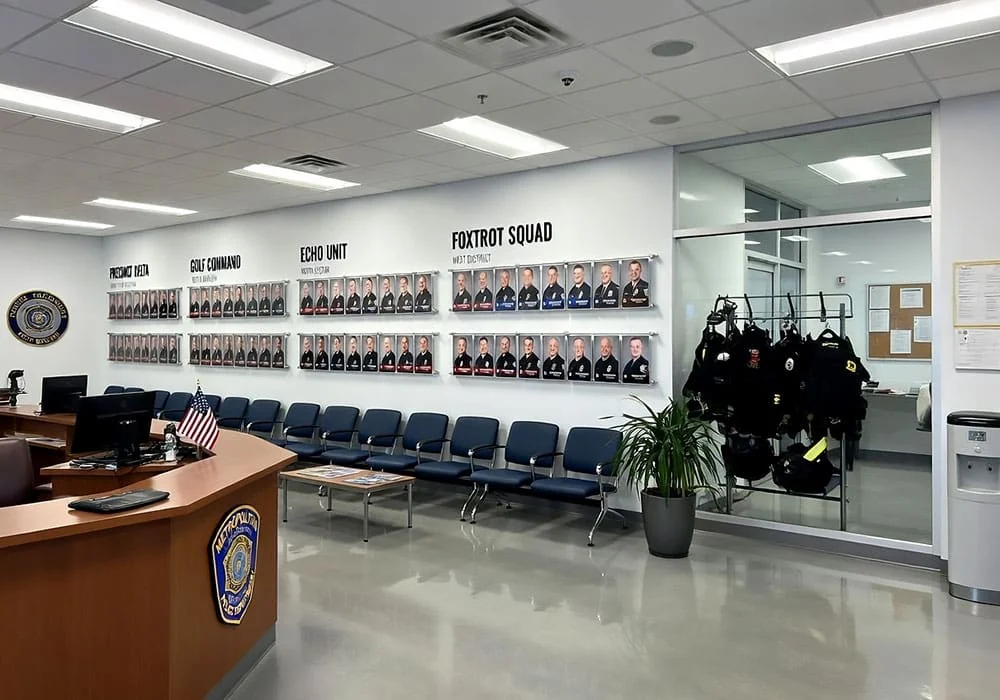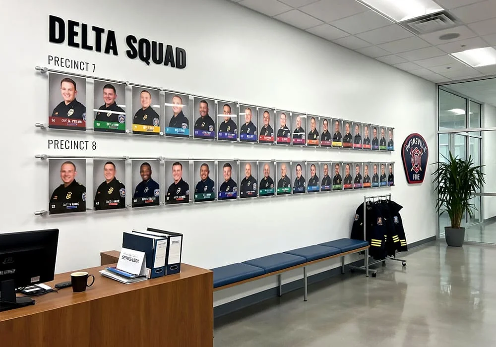 – suspended and wall mounted facility maps, messaging boards, office directory signs, and other specialty signage.