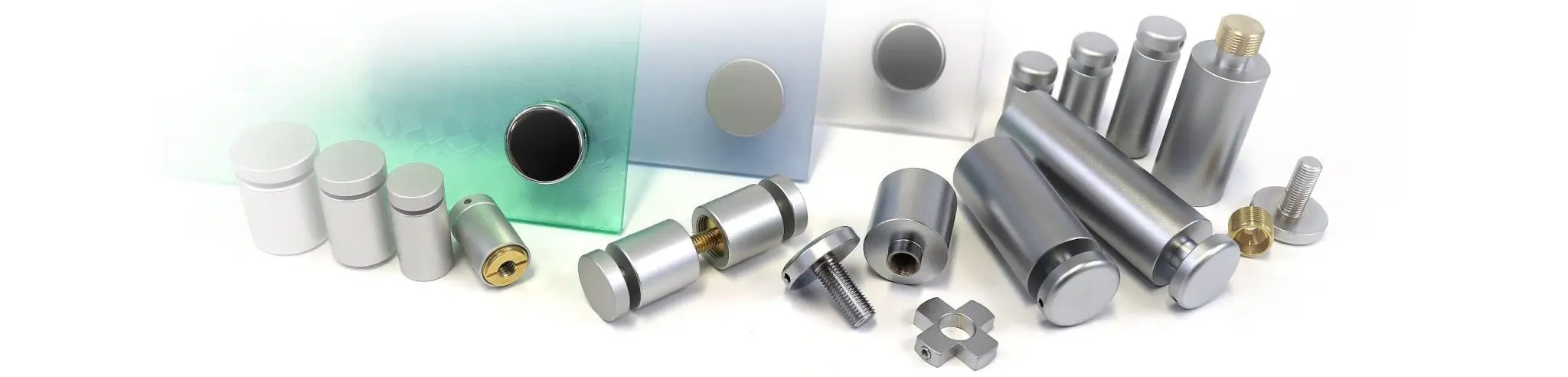 These are durable and modular sign and panel standoff supports that have a wide range of uses. Their modular construction enables for unlimited design possibilities and mounting flexibility. Modular sign/panel standoffs provide an ideal solution for mounting signs, architectural plaques, logo and display panels, directories and other decorative applications. Components are interchangeable and highly customizable. They are made of high-grade aluminum, solid brass, and stainless steel for durability. These are precision-machined components capable of supporting any material, shapes or forms — providing an integral solution to any signage or panel display mounting requirements, while maintaining a consistent look throughout the installation. The modular standoff supports can also be used to create various design effects such as multi-layering, multi-paneling or double-depth mounting configurations.
