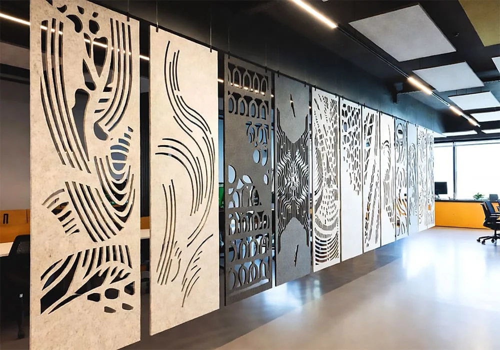 • Finishes and Materials — Select from durable aluminum extrusions, stainless steel components, or modular frames to suit your interior style. Pair with acoustic felt panels in custom colors or textures from your preferred suppliers.