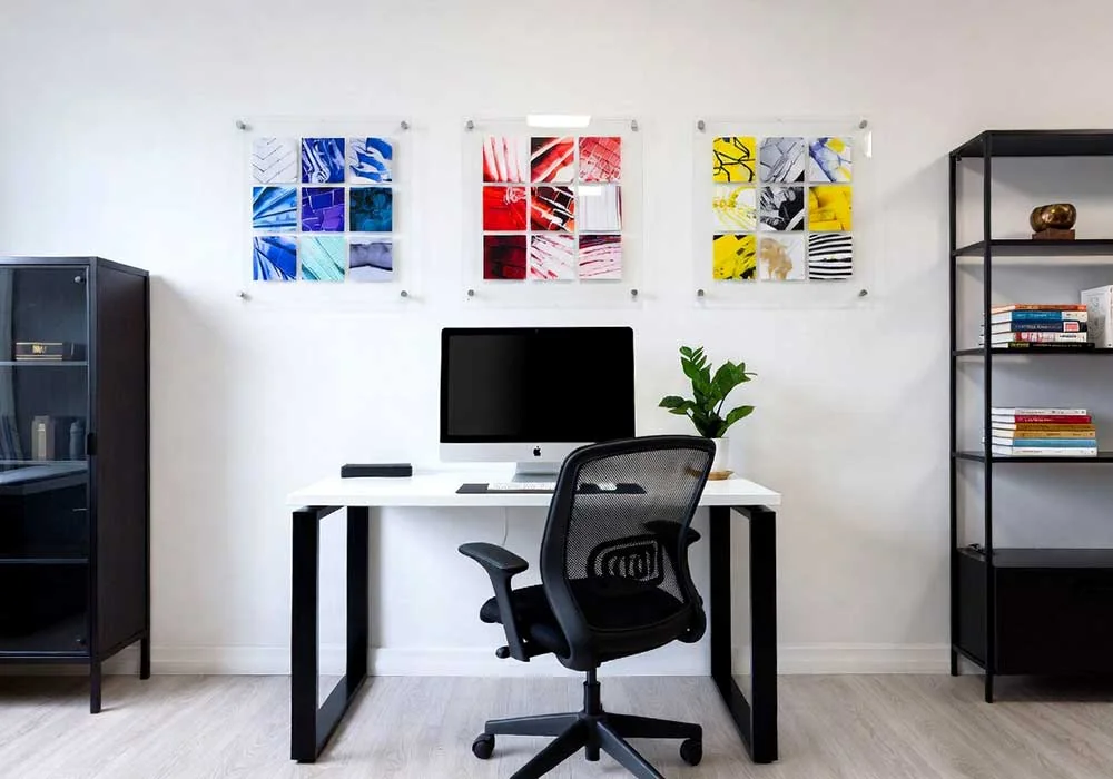 Custom Collage Frame — One front acrylic covers various photos on a matching back panel, fixed with standoffs for a clean, protected unity. Best for simple, elegant spots like apartments or lobbies.