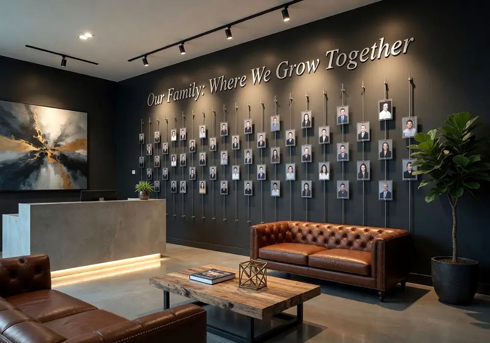 Customizing the hardware selection, frame styles, and overall configuration enables you to align the photo wall display with your brand identity and office decor.