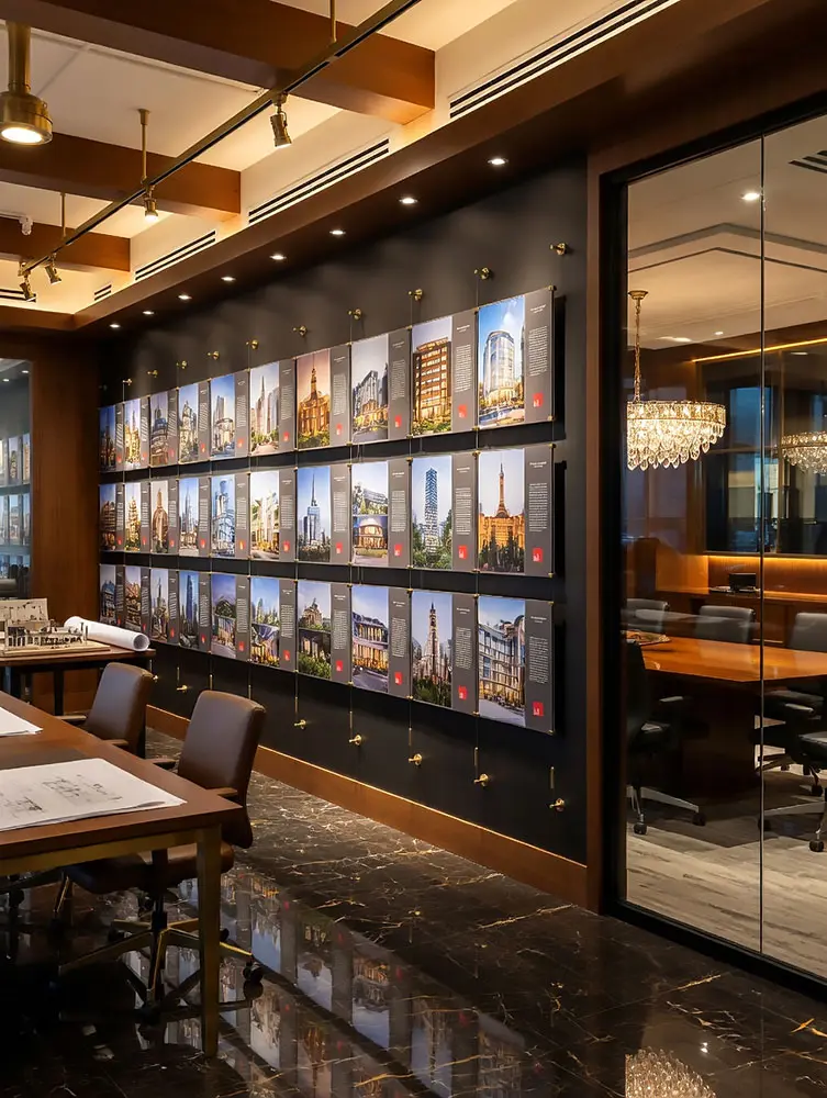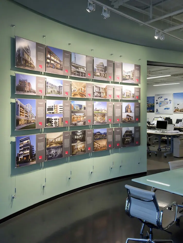 P1009 — Architectural Photo / Render Display Wall Mounted with Cable Hanging Systems | Design Concept