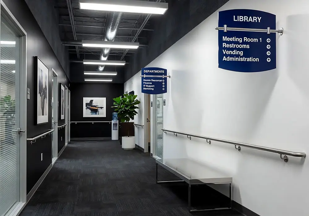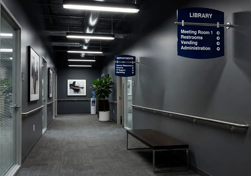 Projecting Standoff Wayfinding Signage – Custom acrylic directional signs for offices and retail environments
