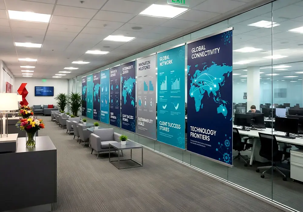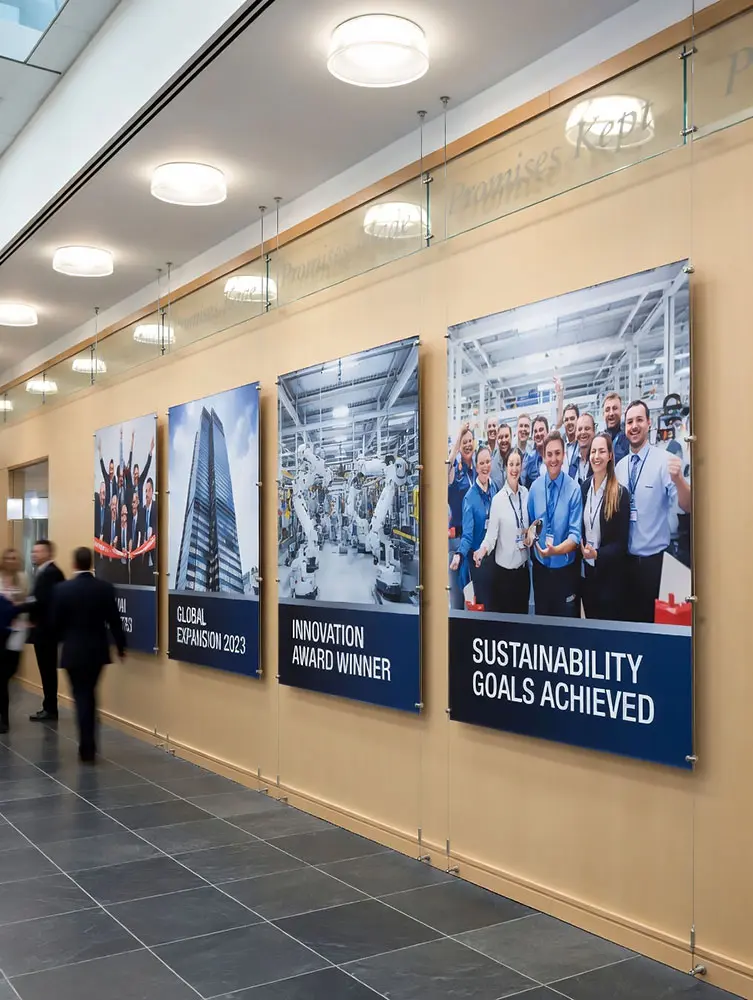 Enhance your office’s visual appeal with a clean, modern info/poster display that impresses clients and motivates employees.