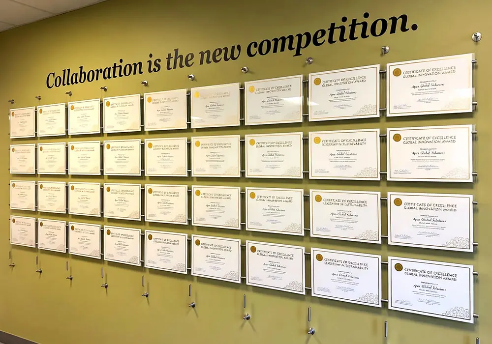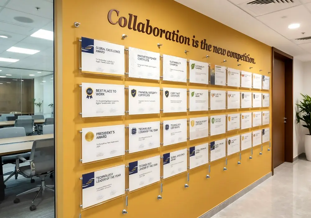 The modular, customizable nature of a cable and rod certificate display system makes it easy to create a cohesive, visually striking presentation that aligns with your brand and office aesthetic.