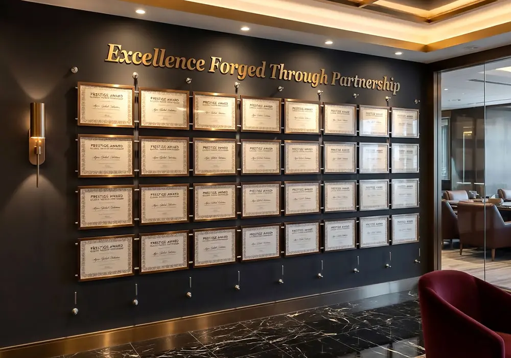 H1016 — Certificate Wall Display Suspended with Cable Systems | Design Concept