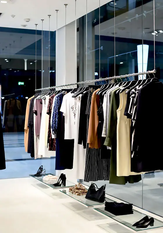 The suspended hanging clothes rails not only provide a sleek and modern aesthetic but also maximize space efficiency, allowing retailers to create visually stunning presentations that captivate customers.