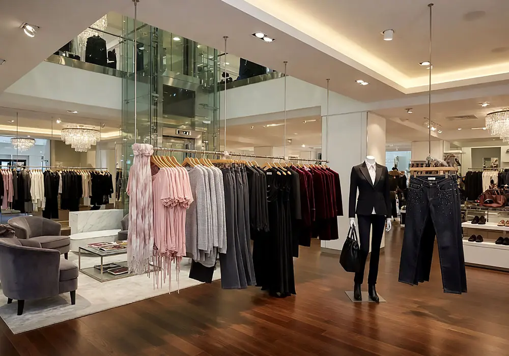 Suspended hanging clothes rails from Nova Display Systems offer a modern, efficient, and visually striking solution for retail clothing displays.