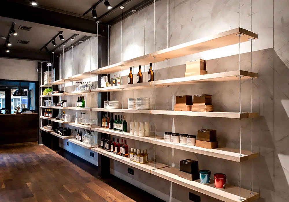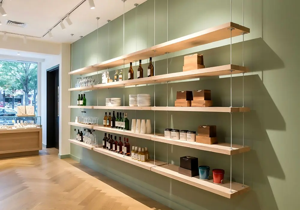 C5036 — Wood Product Shelves Suspended with Cable Hanging System | Design Concept